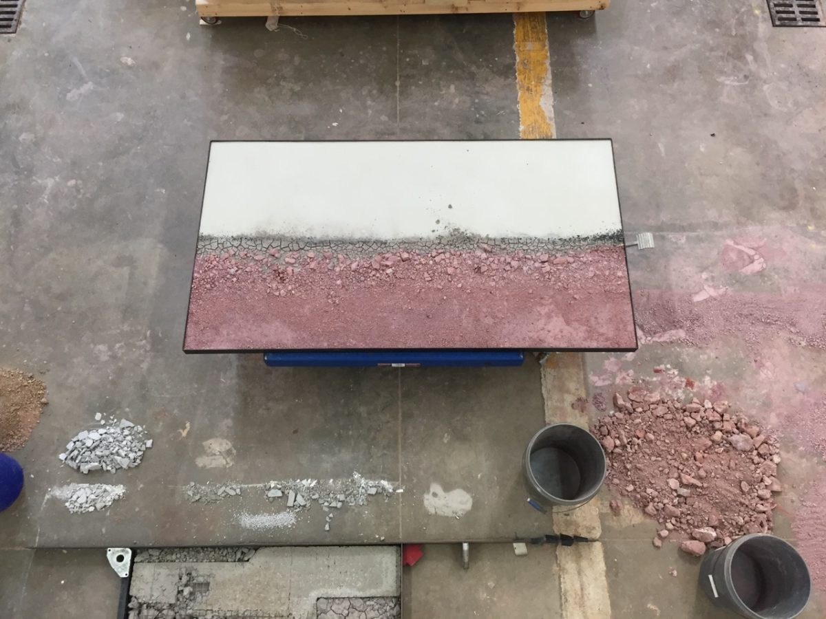 Stancill (MD) lavender and gray clays, sand, steel, and Warrenton, VA basalt dust