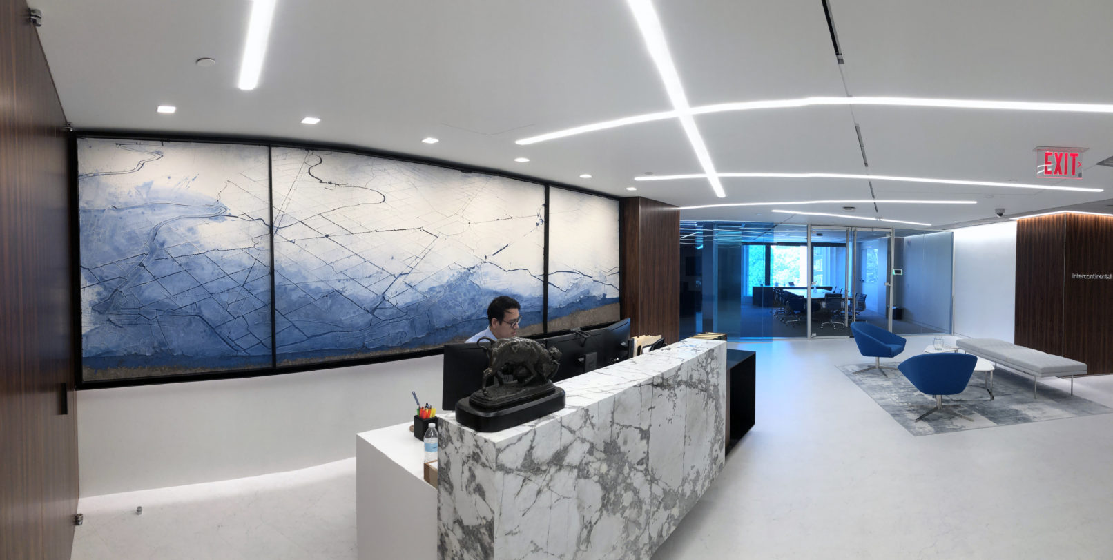 I really love how the work turned out. The oblique angles ended up working really well in the space, too… I love how they work with the lighting design.