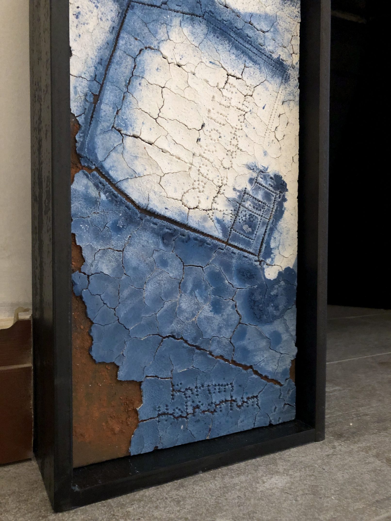 Clay, backer board, steel, custom ceramic pigment