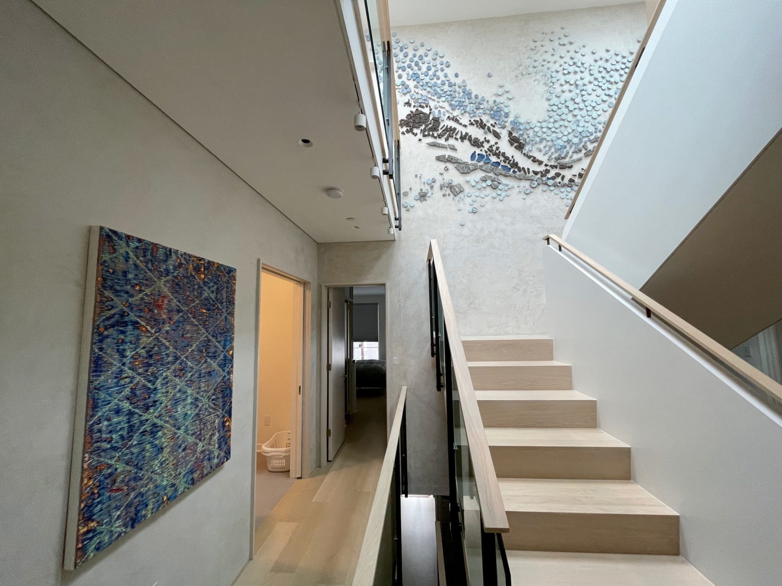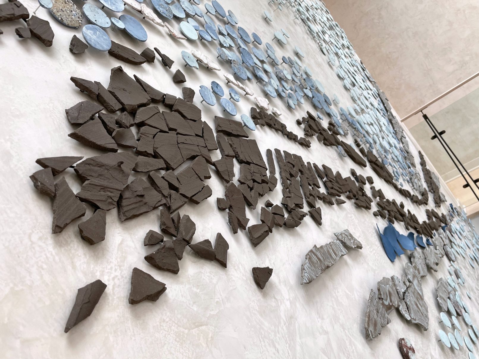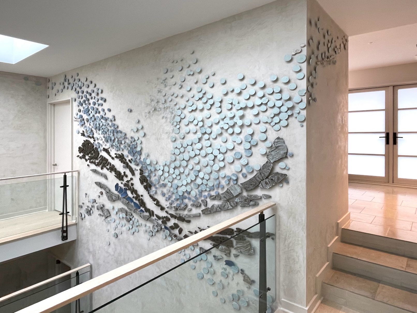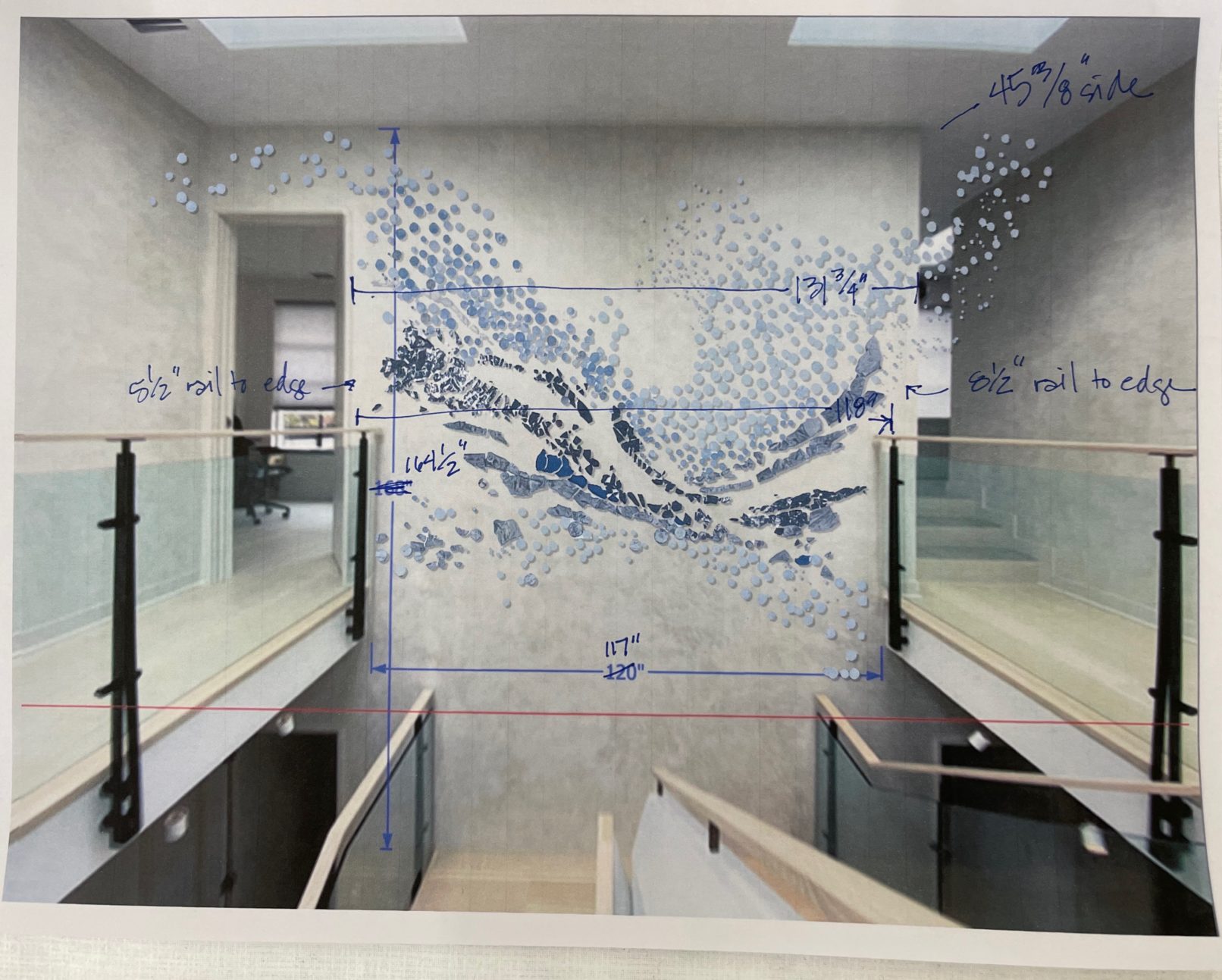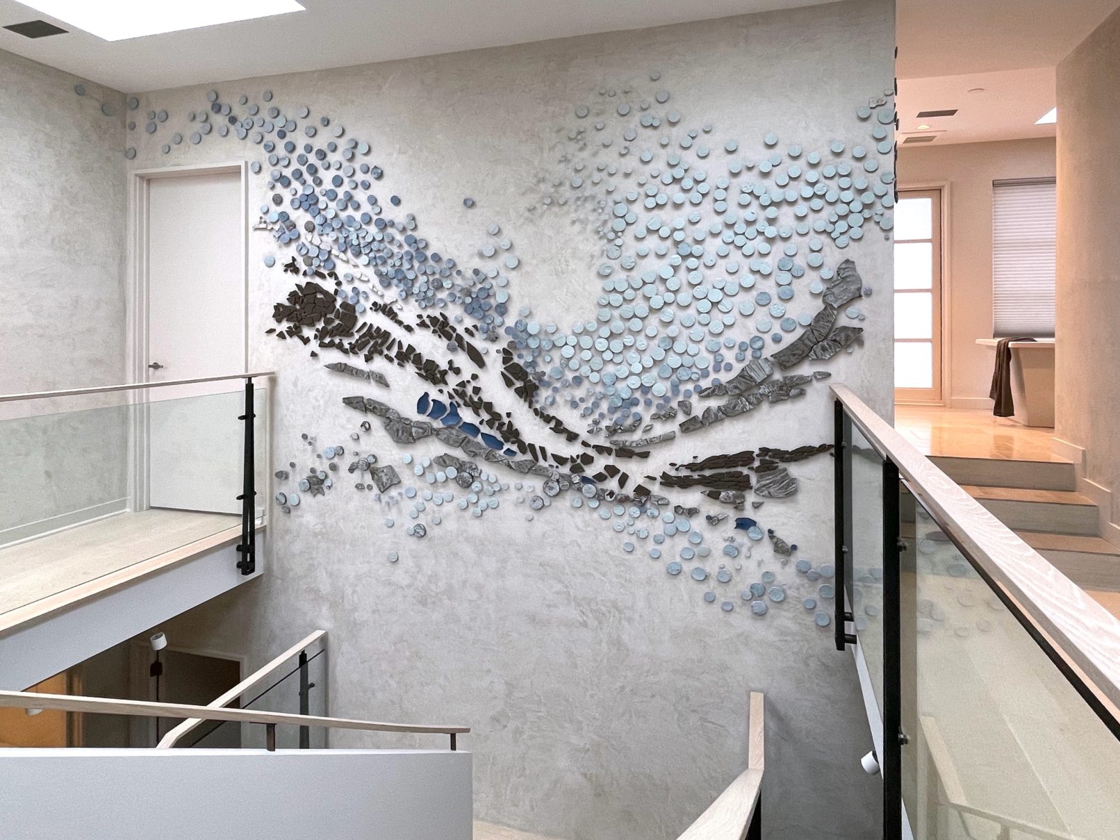 With the clients, we discussed a work that would be soothing, that had the feel of the ocean. I wanted an expansive sense of water, movement and an encompassing beauty that channeled ocean floor scarring, earth that was broken and ripped apart, and over millions of years fused into a new and beautiful form, worn smooth by the motion of the tides.