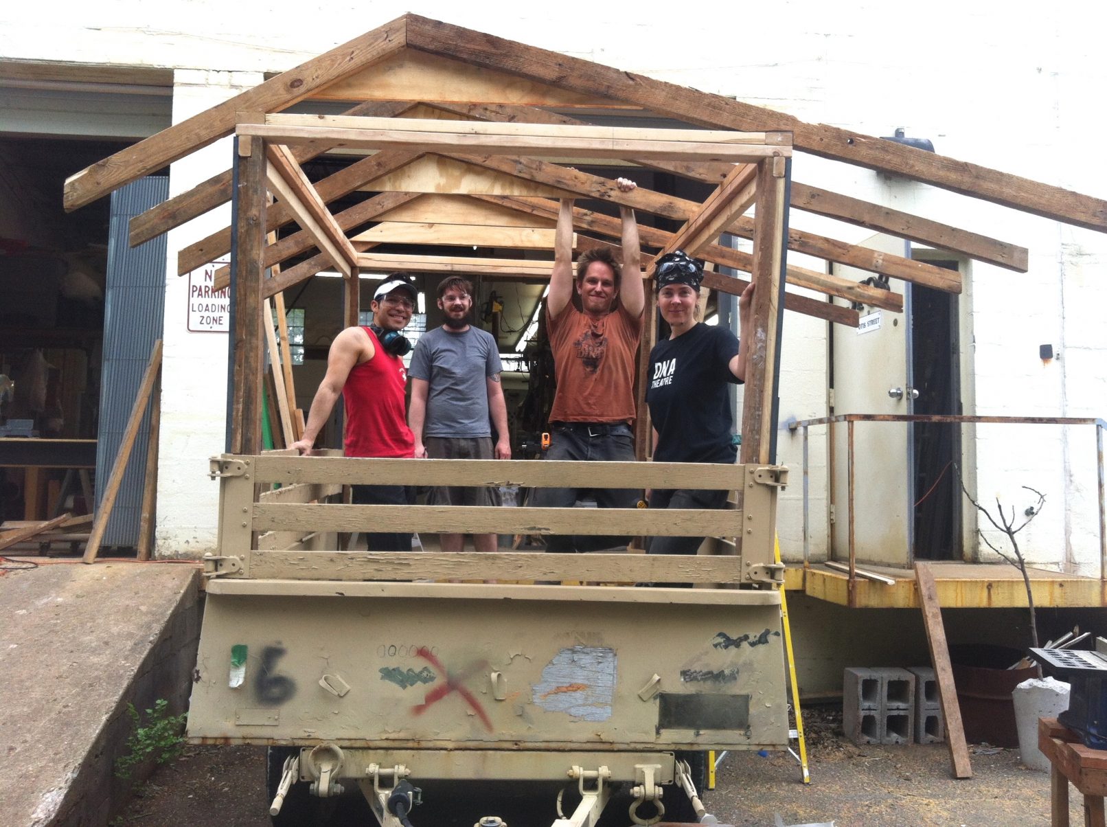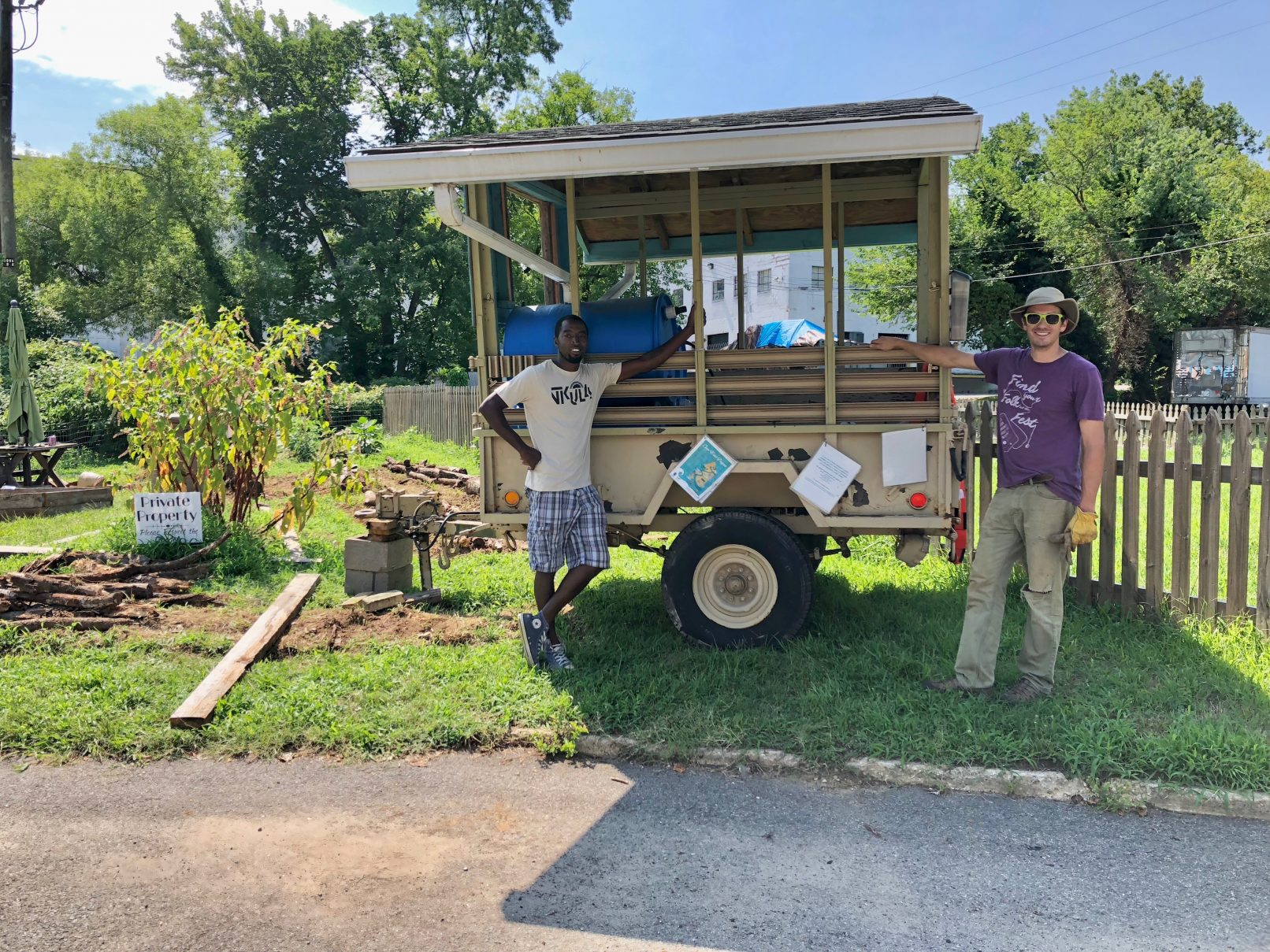 Performance artist and local resident J.J. McCracken collaborates with Red Dirt Studio’s Margaret Boozer to address site-specific/local and broader issues of stormwater management with their project, Gleaning the Rains. Together with Catalogue Brewing’s Patrick McDonough & Kenny George, plus a team of students and interns, McCracken and Boozer transform a hitch trailer into a mobile rainwater collection unit for the market site. The unit doubles as a kiosk, or information locus, as it harvests rain to water onsite artists’ projects in the following ways: Open-source design may be copied by any homeowner in the region interested in installing rain barrels Unit distributes information on tax incentives and rebates for homeowners who adopt water management practices for reducing stormwater runoff on their properties Unit houses workshops by artists involved in the market site throughout the season Built of lumber, common roofing materials, gutters and rain barrels, Gleaning the Rains is a mock-up of any average single-family-home roof in the neighborhood. It serves as an easily copied model while intending to spark dialog about stormwater management among Gateway residents. Collected rainwater may be used to water gardens and trees or to wash cars, etc., reducing the amount of money a homeowner spends on a water bill while decreasing the negative effects of stormwater runoff on the Chesapeake Bay and other regional water bodies.